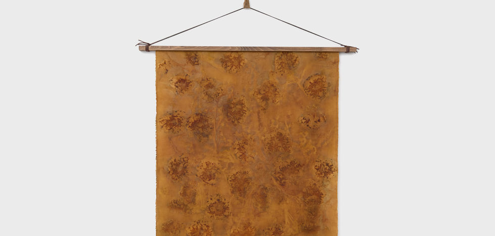 In this series, Park works with plants she has either brought from Korea or grown in her London home. Using natural dyeing techniques, she imprints these plants onto fabric, creating fragile yet potent visual memories. Each work includes an air-dried clay pot containing a unique scent — composed during the creation of the piece — evoking the emotional atmosphere of that particular moment in time.